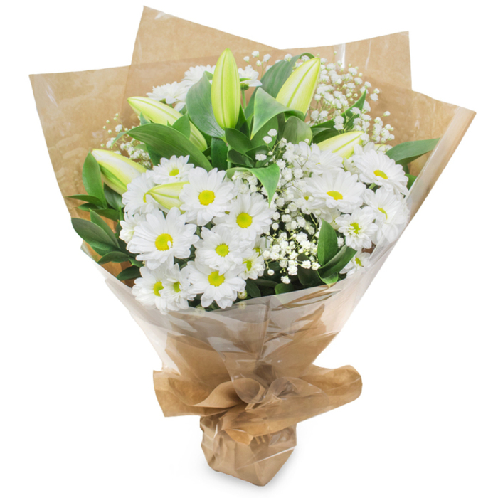 Each PURE ELEGANCE bouquet is created with premium, long-lasting stems and delivered in bud to ensure up to 5 days of freshness, so you can enjoy watching the lilies gently open and fill the room with natural grace. The original size bouquet shown represents the standard design, carefully balanced for fullness and style.